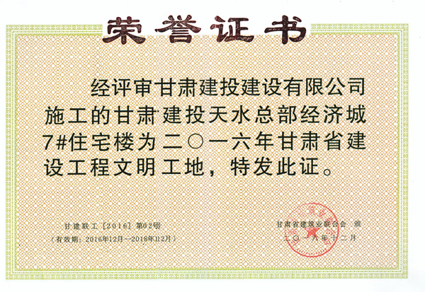 自2014年以來,二安公司承建了平?jīng)雎肺Ef房改造工程2#商住房項(xiàng)目的安裝工程、蘭州新區(qū)石化產(chǎn)業(yè)園7#樓項(xiàng)目安裝工程、蘭州新區(qū)文曲湖景園住宅小區(qū)4#、10#樓項(xiàng)目安裝工程、天水上尚宅一期三標(biāo)段5#、9#、8#、12#樓項(xiàng)目安裝工程、天水總部經(jīng)濟(jì)城7號(hào)樓項(xiàng)目安裝工程等10余項(xiàng)項(xiàng)目安裝。其中2015年蘭州新區(qū)石化產(chǎn)業(yè)園區(qū)安置房項(xiàng)目被評(píng)為甘肅省建設(shè)工程文明工地;2016年平?jīng)雎肺Ef房改造房(建工瑞景2#樓)項(xiàng)目,獲得甘肅省AAA級(jí)安全文明工地、飛天獎(jiǎng);天水總部經(jīng)濟(jì)城二期7#樓項(xiàng)目,獲得甘肅省AAA級(jí)安全文明工地;2017年文曲湖4#、10#樓工地被甘肅建投建設(shè)有限公司評(píng)為2016年度優(yōu)秀項(xiàng)目經(jīng)理部;2017年天水上尚宅榮獲甘肅省文明工地稱號(hào);2018年經(jīng)評(píng)審甘肅省建設(shè)投資(控股)集團(tuán)總公司施工的蘭州新區(qū)文曲湖景園住宅小區(qū)(1#-10#、12#-25#、27#-29#、1#-4#車庫)為2017年甘肅省建設(shè)工程文明工地;深受建設(shè)單位和社會(huì)各界的信賴與好評(píng)。全公司涌現(xiàn)出一大批優(yōu)秀項(xiàng)目經(jīng)理部、優(yōu)秀項(xiàng)目經(jīng)理和先進(jìn)個(gè)人。
