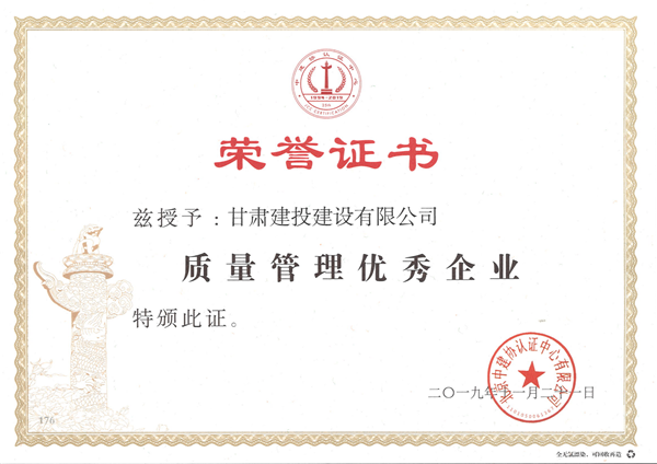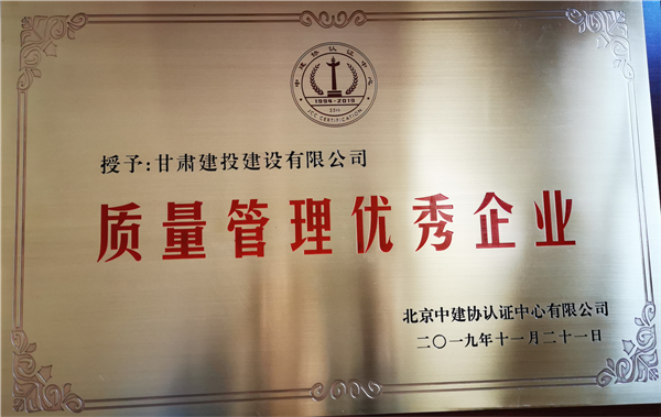 建設(shè)公司獲“質(zhì)量管理優(yōu)秀企業(yè)”榮譽稱號