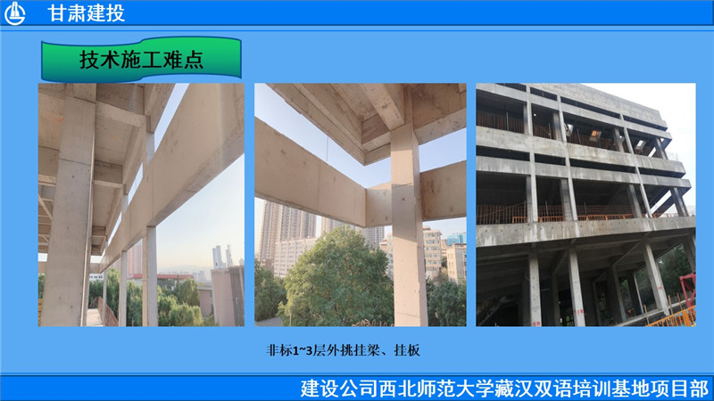 精細(xì)管理,工作日清。西北師范大學(xué)藏漢雙語培訓(xùn)基地項目施工技術(shù)難度較大,為確保年底實現(xiàn)主體順利封頂,項目部管理人員合理安排時間,始終堅持高標(biāo)準(zhǔn)、嚴(yán)要求,精心組織施工。