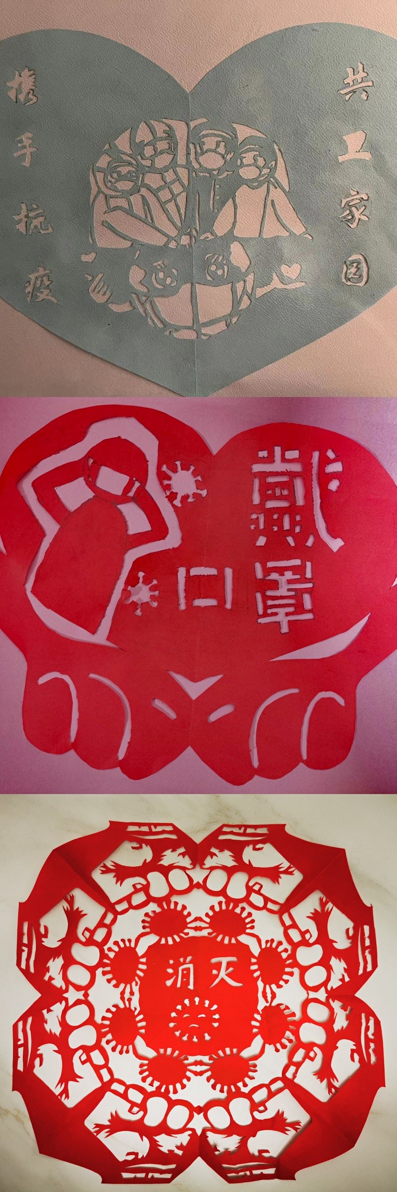 廣大職工將剪紙藝術(shù)與疫情防控知識巧妙結(jié)合,指尖飛旋,刀起紙落,將自己的所思所想融進(jìn)一張張薄紙,將疫情防控的感人場面轉(zhuǎn)化成一幅幅生動的作品,為打贏疫情防控戰(zhàn)加油打氣,為防控疫情盡一份自己的微薄之力。