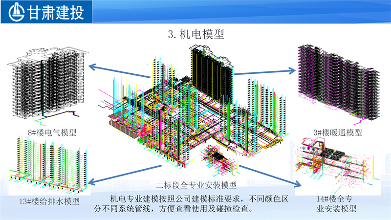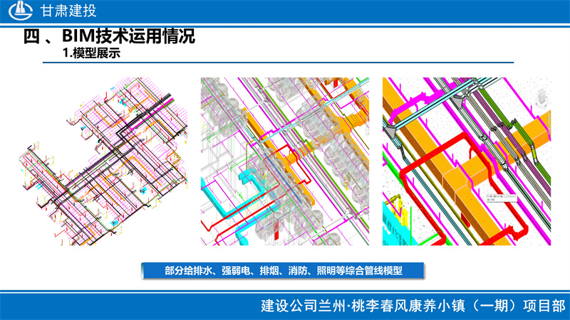 BIM落地應(yīng)用,推動(dòng)項(xiàng)目創(chuàng)優(yōu)。BIM技術(shù)應(yīng)用的落腳點(diǎn)在于為項(xiàng)目提質(zhì)創(chuàng)優(yōu)、降本增效。在建設(shè)公司應(yīng)用BIM技術(shù)的20個(gè)項(xiàng)目中,以榮獲甘肅建投第四屆BIM大賽二等獎(jiǎng)的“楓林九溪”東區(qū)F地塊項(xiàng)目二標(biāo)段工程為例。該項(xiàng)目在BIM技術(shù)應(yīng)用過(guò)程中,項(xiàng)目部積極策劃,通過(guò)三維圖紙會(huì)審、機(jī)電管線綜合排布、暗配管線優(yōu)化、綜合支吊架設(shè)計(jì)、場(chǎng)地三維布置等14項(xiàng)基礎(chǔ)應(yīng)用和BIM+裝配式PC構(gòu)件、BIM+裝配式機(jī)房、BIM+鋁模優(yōu)化等5項(xiàng)創(chuàng)新應(yīng)用,提高了工程施工質(zhì)量,縮短了工期,同時(shí)取得了良好的經(jīng)濟(jì)效益和社會(huì)效益。