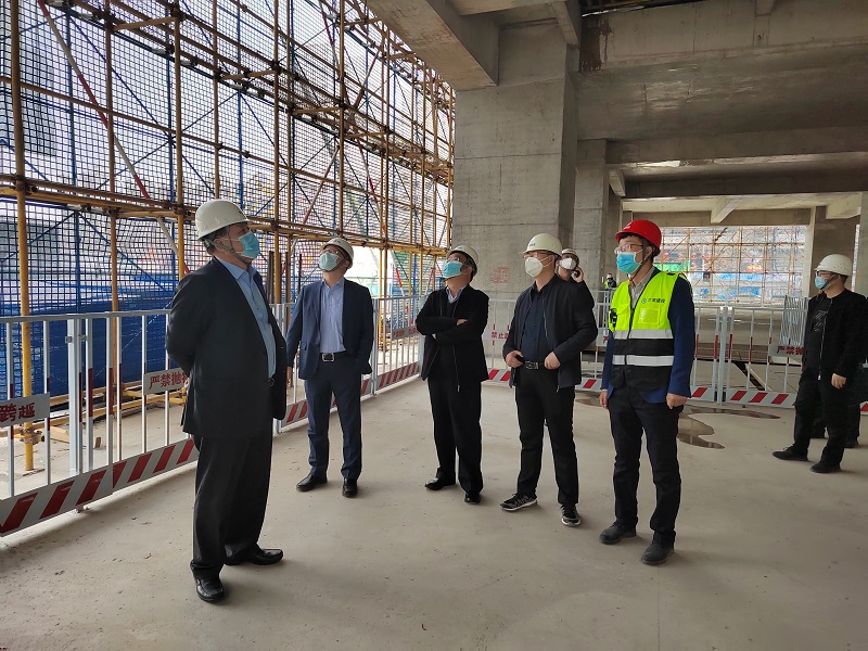 在蘭州環(huán)球中心項目,李鎖林深入施工現(xiàn)場對超高層5#樓及一期工程進行全面細致的查看。充分肯定建設(shè)公司蘭州環(huán)球中心項目的整體工作推進,并對工程的安全、質(zhì)量、信息化建設(shè)、疫情防控工作進行點評。
