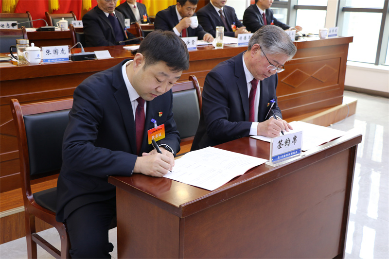 會(huì)上和各基層單位簽訂《2022年度經(jīng)營(yíng)目標(biāo)責(zé)任書》。▲