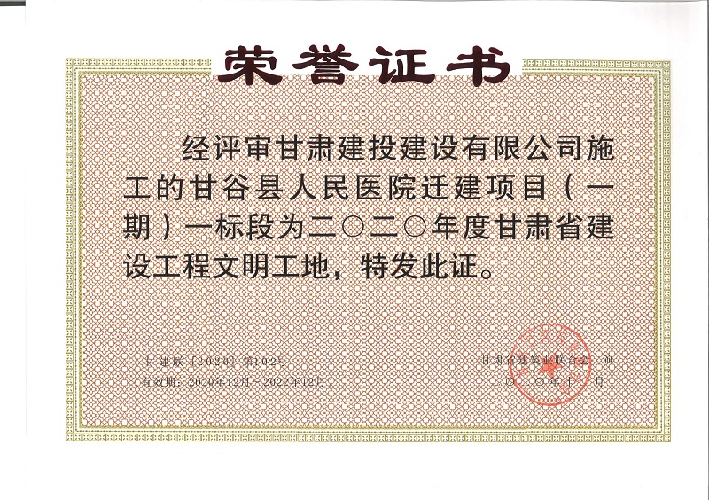 建設(shè)公司甘谷縣人民醫(yī)院遷建項(xiàng)目獲國家級綠色建造施工水平二星評價(jià)