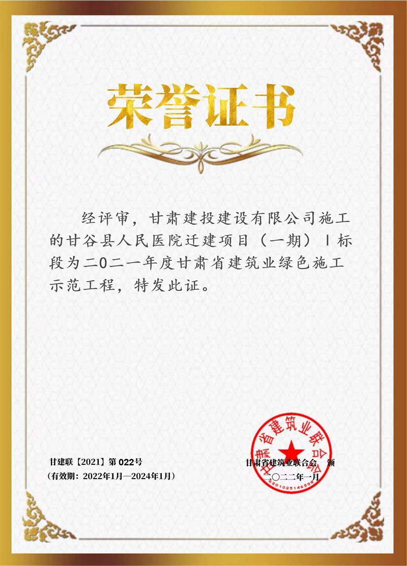 近日,2022年第二批工程建設(shè)項(xiàng)目綠色建造施工水平評價(jià)結(jié)果公布,建設(shè)公司甘谷縣人民醫(yī)院遷建項(xiàng)目經(jīng)過資料初評、現(xiàn)場檢查、結(jié)果審定,被評為二星項(xiàng)目。該項(xiàng)目也是建設(shè)公司首個(gè)綠色建造施工水平摘星項(xiàng)目。