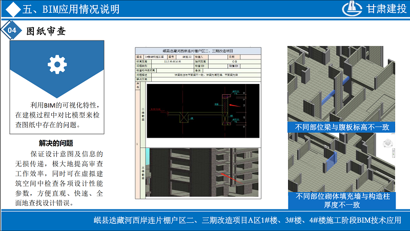 岷縣迭藏河西岸連片棚戶區(qū)二、三期改造項目A區(qū)1#樓、3#樓、4#樓,總建筑面積約8.6萬平方米,由三棟商住樓及地下車庫組成。項目團隊利用BIM技術開展基于BIM的圖紙會審、可視化交底、砌體排磚、管線綜合排布、BIM+VR安全管理等多方面應用,增強項目過程管控能力。