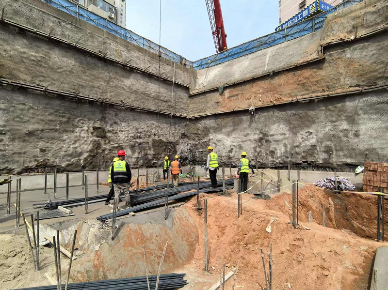 晝夜鏖戰(zhàn)善攻堅。面對復雜地質條件和狹小的施工場地,技術人員實時監(jiān)測鉆孔深度、注漿壓力等參數,青年突擊隊以“狹路相逢勇者勝”的斗志,精心準備、駐守一線、精準發(fā)力,通宵進行抗拔力檢測,以“完成一段、驗收一段”的節(jié)奏,確保主體結構抗浮安全萬無一失,在方寸之地闖出攻堅新路。