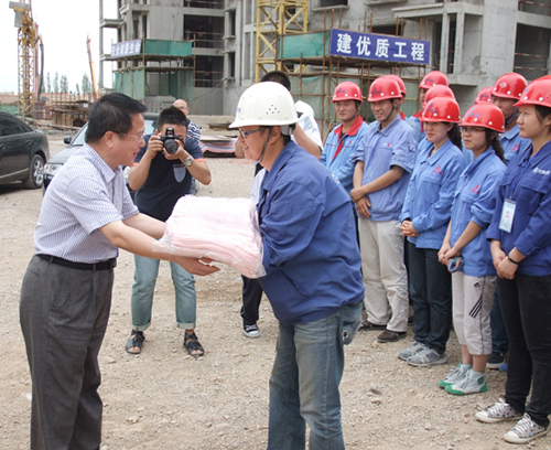 “常言說(shuō)建筑是凝固的詩(shī),這詩(shī)是我們建筑工人揮灑著辛勤汗水的鏗鏘鳴唱!”甘肅建投黨委書記宋忠慶如實(shí)說(shuō)。每到一處甘肅建投領(lǐng)導(dǎo)都向在酷暑中堅(jiān)守崗位的隊(duì)員們表示親切的慰問(wèn)和真誠(chéng)的感謝,并高度肯定了他們做出的巨大貢獻(xiàn)。甘肅建投正處在一個(gè)高速發(fā)展的時(shí)期,處在一個(gè)跨越發(fā)展的時(shí)期,認(rèn)為一線職工們?yōu)楦拭C經(jīng)濟(jì)及甘肅建投發(fā)展做出了建投人應(yīng)有的貢獻(xiàn)。