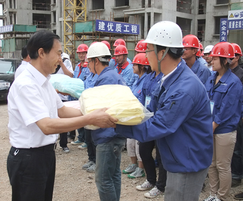 夏日炎炎,一線職工們的生產(chǎn)生活情況始終牽掛在甘肅建投領(lǐng)導(dǎo)們的心頭。8月上旬,甘肅建投副董事長(zhǎng)、黨委書記宋忠慶,黨委副書記、紀(jì)委書記張育謙,工會(huì)主席尹克云等領(lǐng)導(dǎo)同志深入一線施工現(xiàn)場(chǎng),看望了奮戰(zhàn)在烈日酷暑下的一線干部、職工群眾,并為他們送去了茶葉、毛巾等防暑降溫用品,給他們送上一份份“清涼”的問(wèn)候。