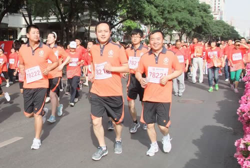 6點鐘,甘肅建投職工早已排成整齊的隊列在指定位置各就各位,隨著航拍飛機一次次在中心廣場上空盤旋,甘肅建投職工的歡呼聲響徹天地。專業(yè)運動員率先開跑之后,甘肅建投代表隊處于眾多的方陣中的第二方陣,425名從集團所屬各單位抽調(diào)的職工身穿印有“甘肅建投”字樣的運動服裝,30人一排,邁著強有力的步伐,進(jìn)行5公里迷你馬拉松的比賽,全體運動員互相幫助、互相扶持、互相激勵,順利完成了賽程,到達(dá)終點,體現(xiàn)了甘肅建投的團隊精神。
