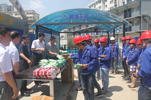 每到一個項目部,公司領(lǐng)導(dǎo)親手把茶葉、冰糖、綠豆、毛巾等慰問品送到職工手中,在炎炎夏日給他們送去清涼的同時,也送去了公司對一線職工的關(guān)懷和問候。