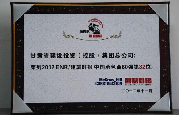 甘肅建投榮登2012中國承包商企業(yè)60強(qiáng)第32位