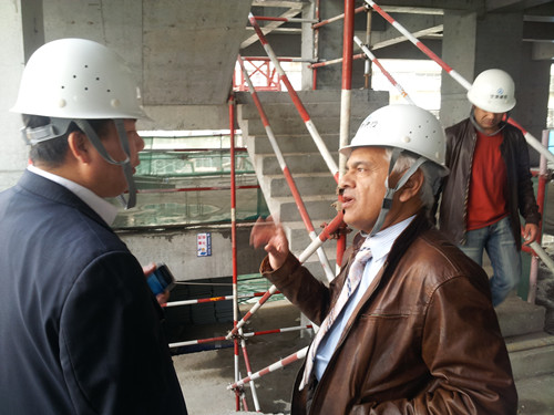 2013年4月20日,中甘國際沙特公司合作伙伴默罕默德.穆尼爾一行三人在中甘國際公司相關(guān)人員陪同下,參觀了我公司施工的建投3#樓施工現(xiàn)場。穆尼爾等參觀施工現(xiàn)場的安全防護、技術(shù)質(zhì)量等,對現(xiàn)場電梯井口的工具化、定型化防護措施及施工質(zhì)量驗收標(biāo)牌上墻制度交口稱贊,同時也對該工程現(xiàn)場管理給予了高度評價。