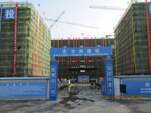 2013年6月29日,陽光明媚,整個嘉峪關(guān)市南市區(qū)都充滿了喜氣洋洋的氣氛,在這美好的日子里,嘉峪關(guān)市酒鋼三中新建校區(qū)一期工程封頂儀式隆重舉行,前來參加儀式的人中有教育局的相關(guān)領(lǐng)導、酒鋼三中的領(lǐng)導、資深老教師以及與施工密切相關(guān)的各方代表近100人見證了這個激動人心的時刻。