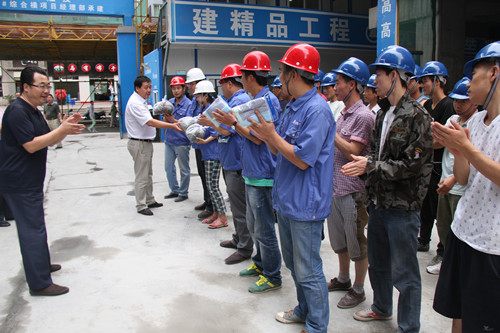 在炎炎夏日里,奮戰(zhàn)于一線的廣大干部職工、作業(yè)人員的防暑降溫工作是甘肅建投建設(shè)公司董事長李鎖林同志十分關(guān)心的事情,按照公司防暑降溫工作安排,李鎖林同志來到了正在施工過程中的甘肅建投3#綜合樓工程項目部,為項目部管理人員及作業(yè)人員“送清涼、送安全”,并要求在當(dāng)前的夏季高溫季節(jié),要通過改善作業(yè)環(huán)境,關(guān)心職工生活,來達到真正的防暑降溫效果,使員工能夠安全生產(chǎn)、有效工作。項目部管理人員及作業(yè)人員對李董事長的到來表示熱烈歡迎,并感謝公司為項目部送來防暑降溫慰問品。