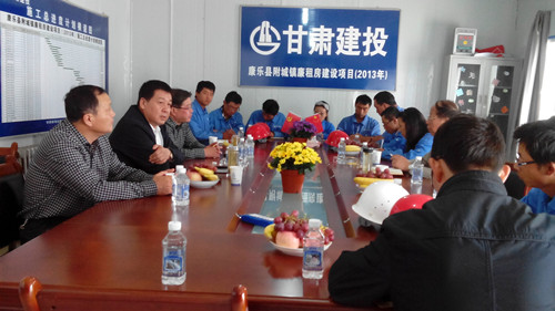 近日,公司董事長李鎖林及黨委書記張國虎一行到二公司康樂縣保障房項目建設現(xiàn)場,詳細詢問建設情況,并召開現(xiàn)場管理人員會議。