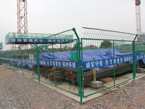 工地的板房采用組裝式,與以往所用的鉚釘式相比,拆卸損耗從百分之二三十一下降至幾乎可以忽略不計(jì),而價(jià)錢卻相差不多;工地和辦公區(qū)之間由專門定制的綠色的護(hù)欄隔開,護(hù)欄的面積大小均按照電梯門的大小制作,美觀之余將來可以重復(fù)使用。