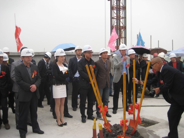 5月9日上午,在高新大廈項(xiàng)目施工現(xiàn)場,伴隨著最后一方砼的澆筑到位,彩旗迎風(fēng)飄揚(yáng),鑼鼓聲震耳欲聾,工人們的臉上洋溢著喜悅的神色,原來這里即將隆重舉行高新大廈封頂儀式,整個儀式現(xiàn)場裝飾一新,呈現(xiàn)出一派喜慶祥和的氣氛。