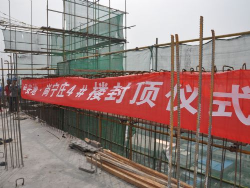 平安地•尚寧莊住宅小區(qū)建設(shè)項(xiàng)目4#樓工程建筑面積總34879.5平方米,為一類高層住宅樓,耐火等級為一級。結(jié)構(gòu)類型為現(xiàn)澆剪力墻結(jié)構(gòu),開工時間為2013年10月1日, 計(jì)劃竣工時間為2015年9月25日,總工期725天。此后該項(xiàng)目將轉(zhuǎn)入砌體、二次結(jié)構(gòu)等施工階段。四公司經(jīng)理他得才和副經(jīng)理程建軍受邀出席參加了封頂儀式。