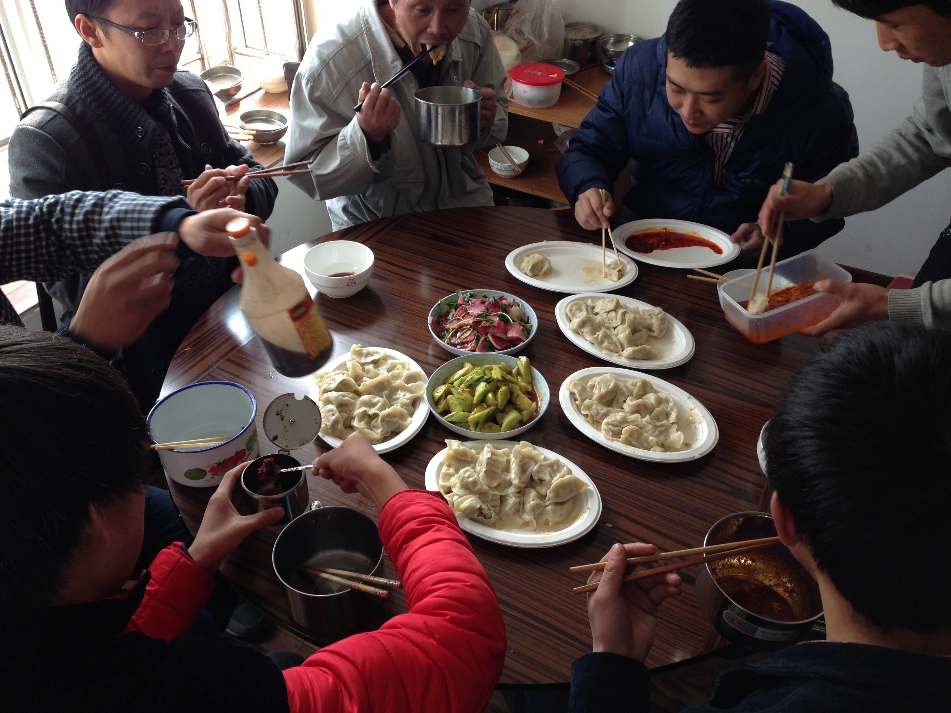 隨后,大家七手八腳,各顯神通的開始包餃子。經(jīng)過一上午的辛苦努力,一千多個待下鍋圓鼓鼓的餃子終于包好了,回頭看看所有人,哪個不是白頭粉面的,但是藏不住的喜悅卻一直掛在臉上。午飯時間,項(xiàng)目部的同志們聽說包了熱騰騰的餃子,便一窩蜂涌向飯?zhí)?,大家爭先恐后的圍坐在飯桌前,大家顧不到欣賞,將各式各樣的餃子搶一個先塞進(jìn)嘴里,不時連連贊嘆:“好香!因?yàn)楣さ厝硕?,自開工以來還未吃過餃子,歡迎你們常來?!贝藭r我們幾個人之前的辛苦便不是什么了。