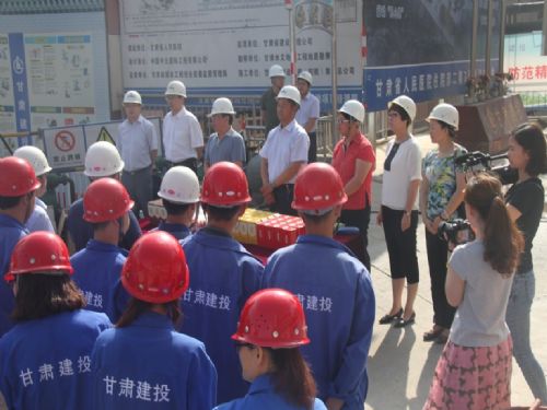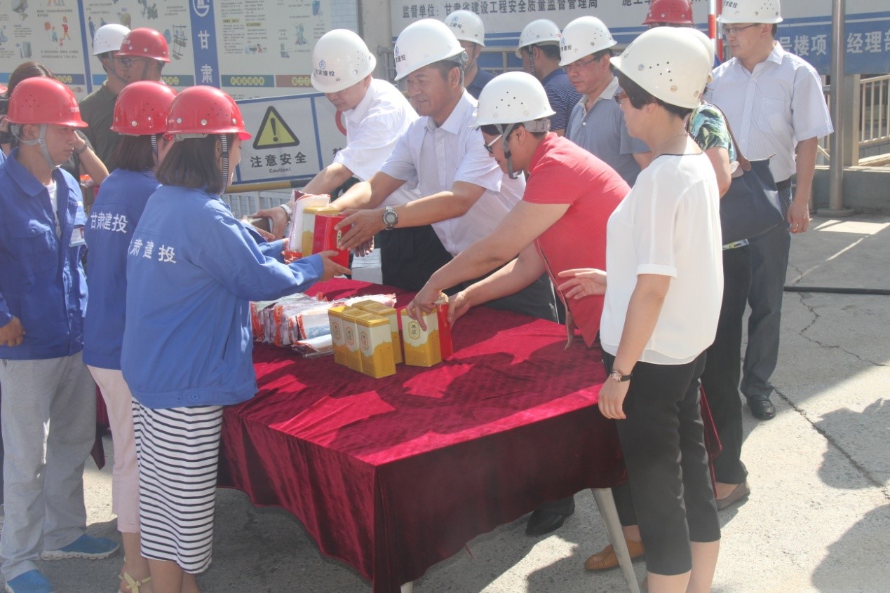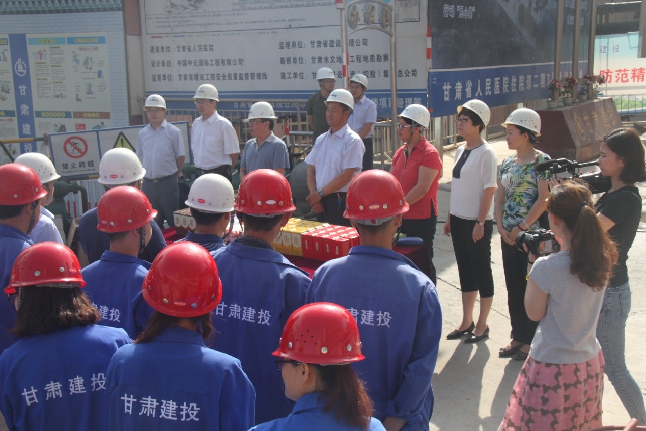 為了切實(shí)保障一線施工人員的健康權(quán)益,督促項(xiàng)目部做好一線職工防暑降溫工作,7月6日上午,甘肅建投黨委書記宋忠慶帶領(lǐng)集團(tuán)總公司有關(guān)處室負(fù)責(zé)人來(lái)到省人民醫(yī)院住院部二期7#、8#樓項(xiàng)目部慰問在炎炎夏日仍堅(jiān)持作業(yè)的項(xiàng)目部一線職工,及時(shí)為他們送去了防暑降溫用品。