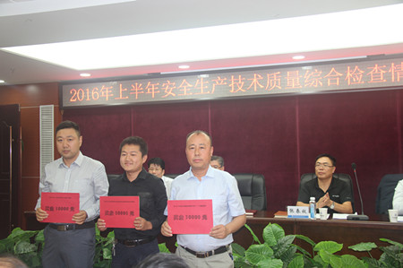 隨后,會(huì)議對(duì)檢查排名前三的項(xiàng)目部進(jìn)行了通報(bào)獎(jiǎng)勵(lì),并予以現(xiàn)金獎(jiǎng)勵(lì),對(duì)此次檢查倒數(shù)后三名分別處罰3至1萬(wàn)元。