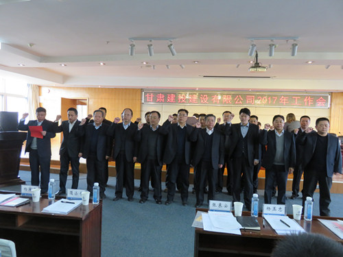 在會上,建設(shè)公司19名處級干部進行了集體廉政宣誓隨后進行了勤政廉政民主測評,黨委書記張國虎代表公司領(lǐng)導(dǎo)班子作了《2017年工作會議報告》,同時,公司領(lǐng)導(dǎo)分別與基層各單位負(fù)責(zé)人簽訂了2017年度建設(shè)公司經(jīng)營、黨建、黨風(fēng)廉潔建設(shè)等目標(biāo)責(zé)任書。最后,會議表彰了2016年各類先進單位和個人。