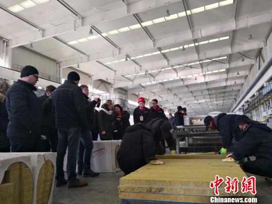 圖為1月上旬,白俄羅斯建筑企業(yè)考察團(tuán)參觀甘肅建投“鋼結(jié)構(gòu)”建筑?!●T志軍 攝