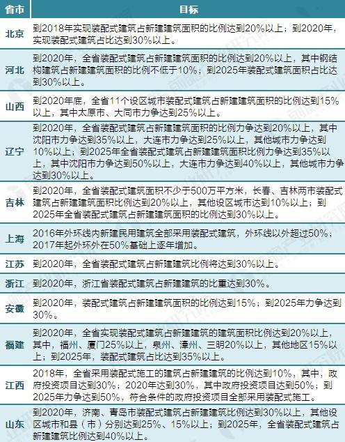 [導(dǎo)讀]截至2018年1月我國已經(jīng)有30多個省市地區(qū)就裝配式建筑的發(fā)展給出了相關(guān)的指導(dǎo)意見以及配套的措施,其中22個省份均已制定裝配式建筑規(guī)模階段性目標(biāo),并陸續(xù)出臺具體細化的地方性裝配式建筑政策扶持行業(yè)發(fā)展。