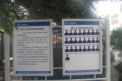 根據(jù)該工程項(xiàng)目確?!疤焖形拿鞴さ亍薄ⅰ案拭C省省級(jí)文明工地”的目標(biāo)計(jì)劃,項(xiàng)目部編制了具有針對(duì)性的、符合現(xiàn)場(chǎng)實(shí)際的文明施工規(guī)劃,確定文明施工標(biāo)準(zhǔn)。生產(chǎn)區(qū)、辦公區(qū)、生活區(qū)平面等布置,材料加工與堆放嚴(yán)格按施工現(xiàn)場(chǎng)文明施工規(guī)劃圖實(shí)施。同時(shí)結(jié)合項(xiàng)目部實(shí)際嚴(yán)格落實(shí)甘肅建投企業(yè)“VIS”視覺(jué)識(shí)別系統(tǒng),對(duì)門(mén)頭、企業(yè)宣傳用語(yǔ)、宣傳欄、管理人員和作業(yè)人員工作服、安全帽、胸牌,辦公用品等都進(jìn)行了統(tǒng)一規(guī)范。