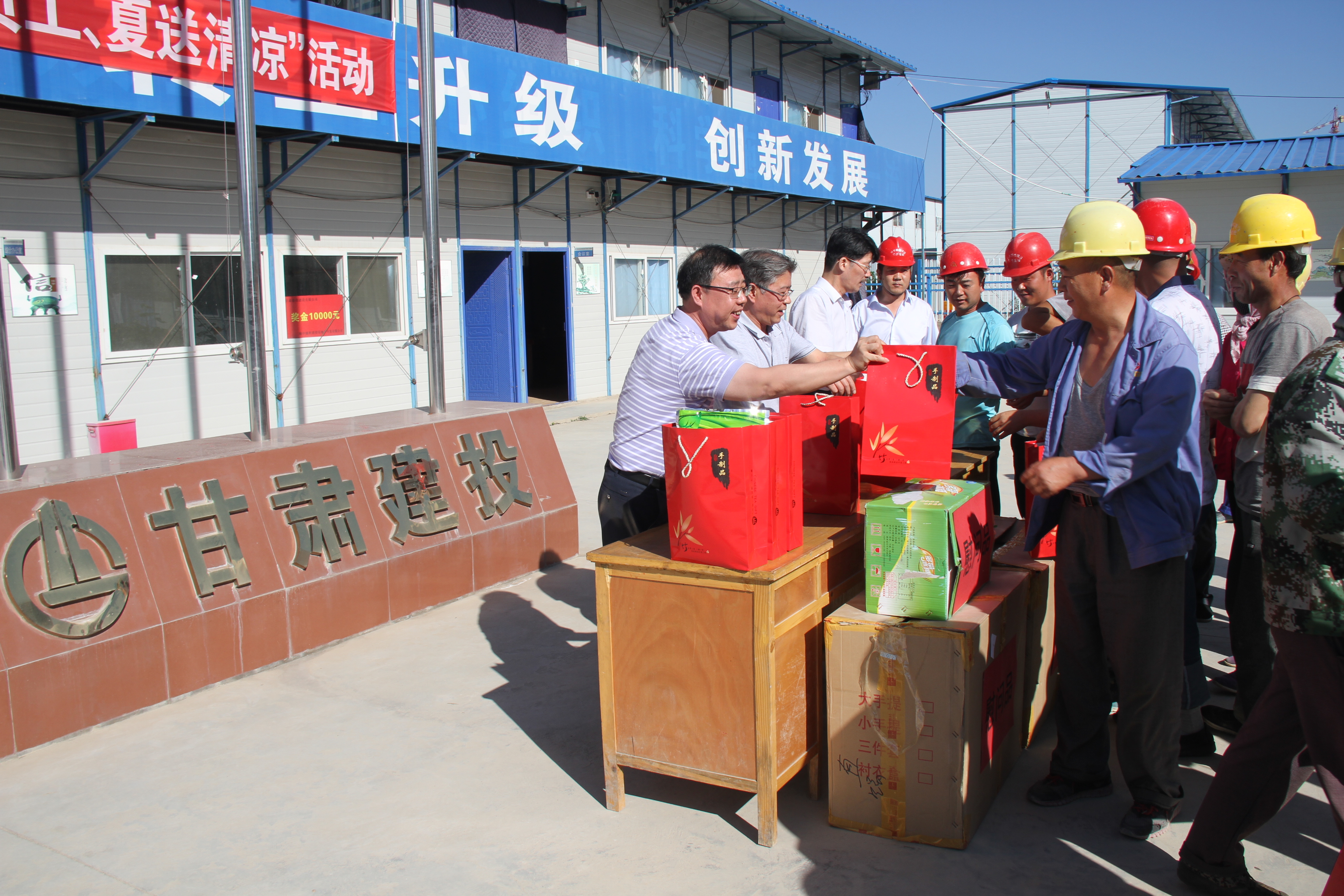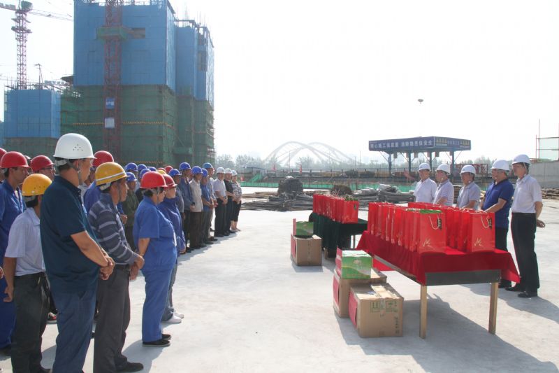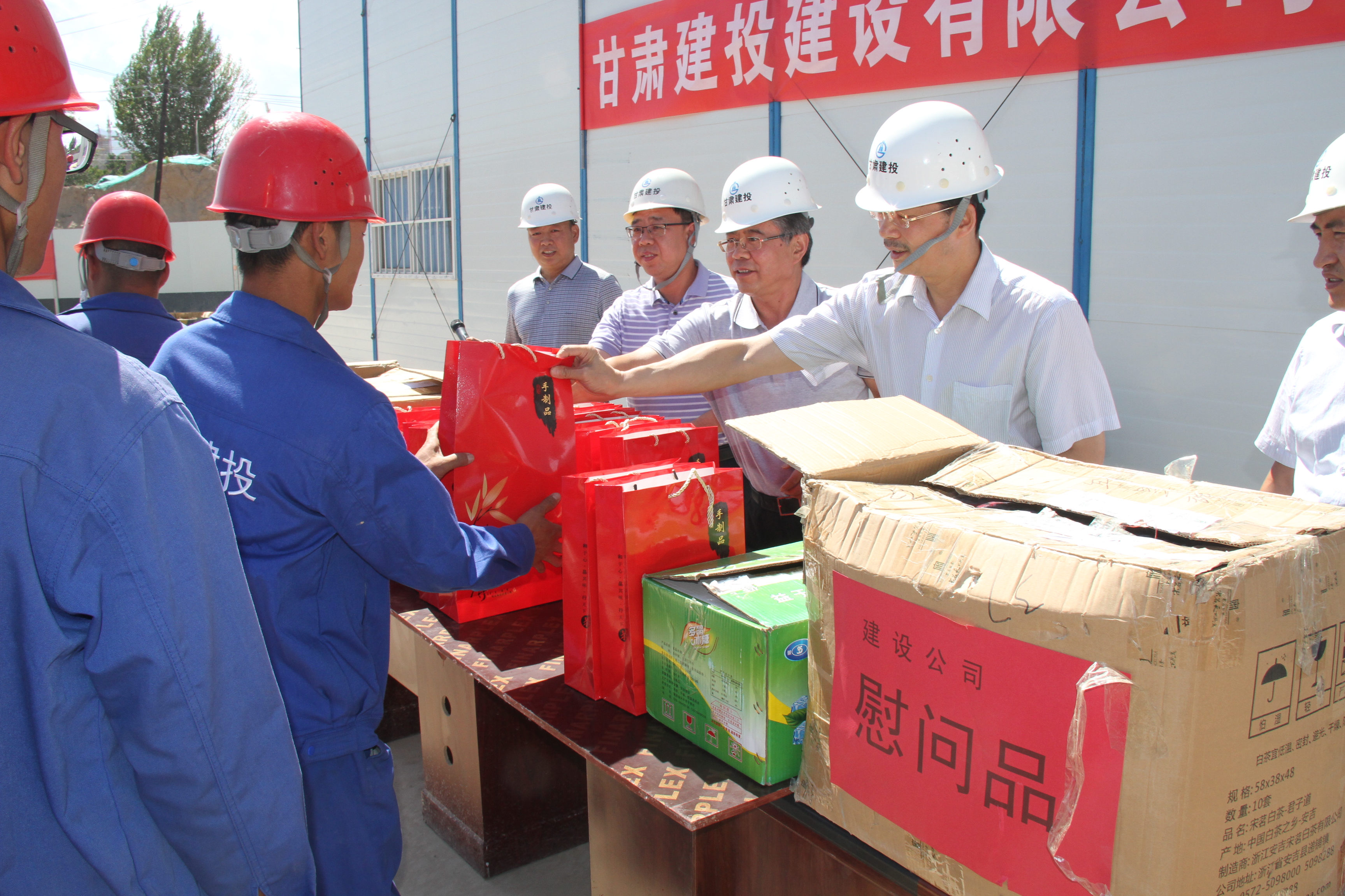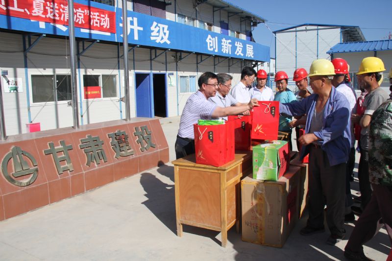近期正值高溫酷暑三伏天,為了切實(shí)保障廣大職工的生產(chǎn)安全和身心健康,傳遞公司對廣大職工的關(guān)愛,營造良好和諧的工作氛圍,建設(shè)公司領(lǐng)導(dǎo)班子成員相繼趕赴蘭內(nèi)在建項目部慰問奮戰(zhàn)在施工一線的廣大職工,并為大家送去了防暑降溫所用的茶葉、毛巾、防暑藥品等慰問品。