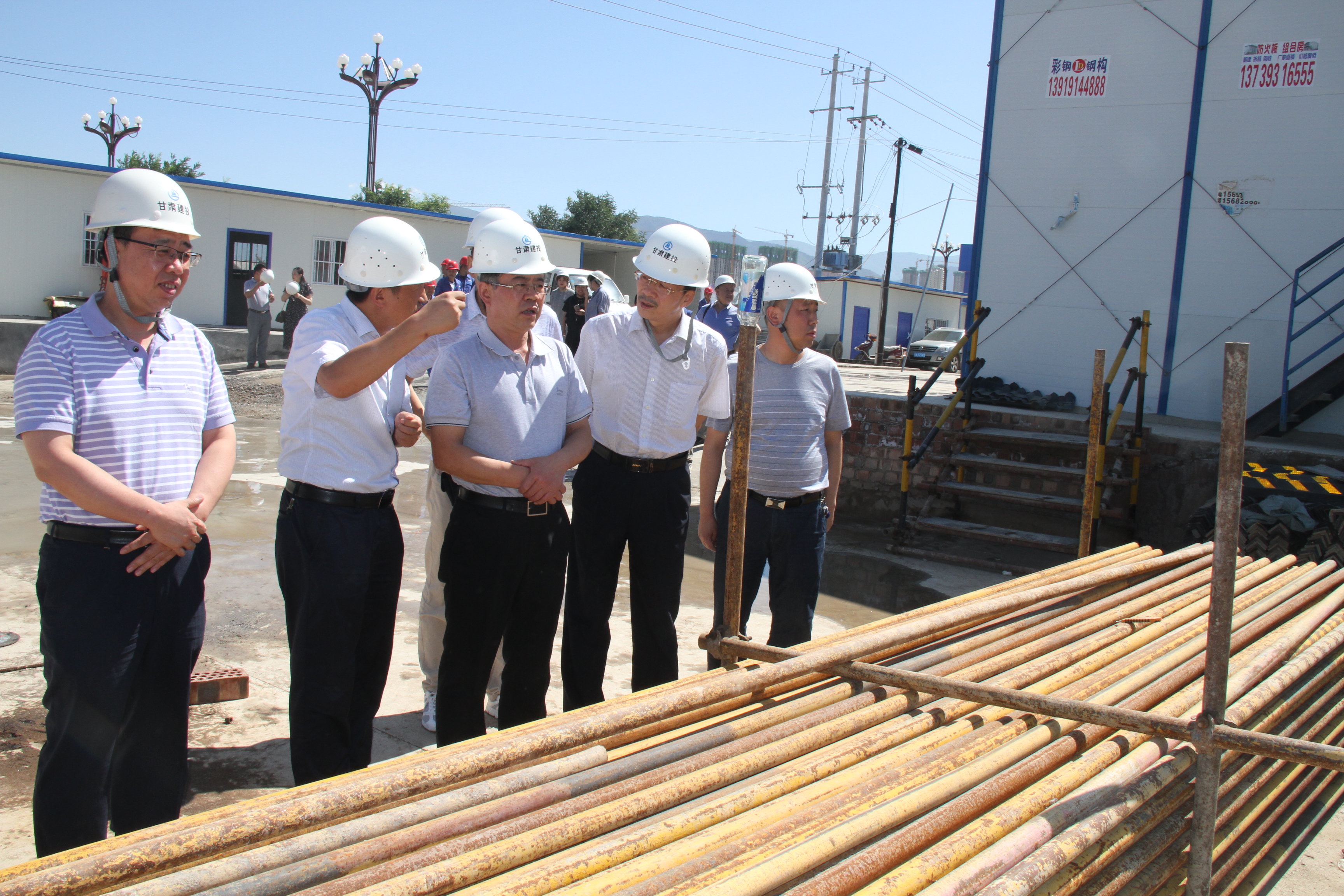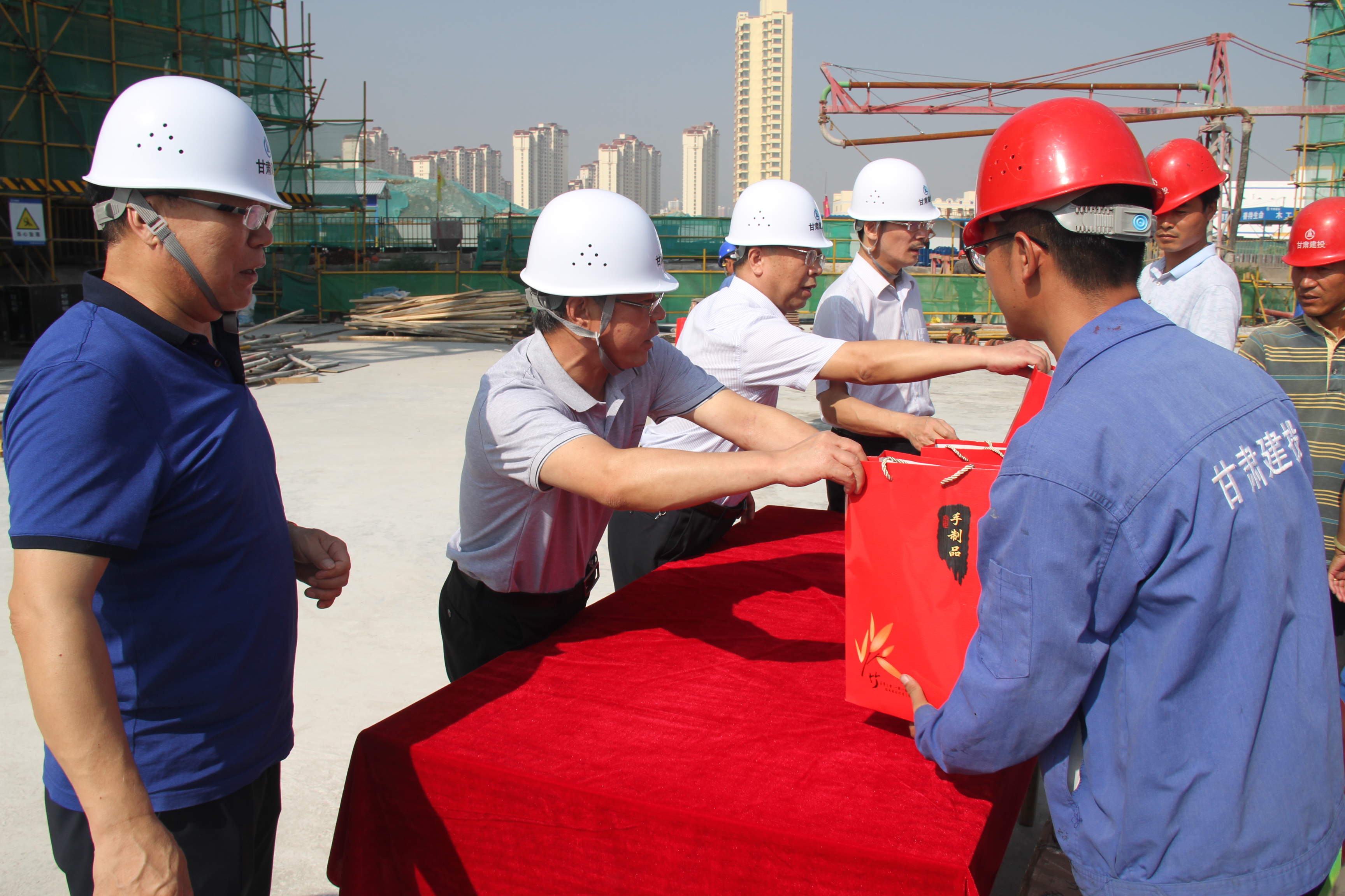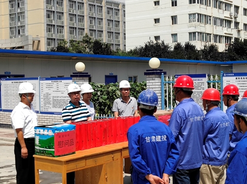 在安寧區(qū)蘭飛棚戶區(qū)改造86#住宅樓項目部和蘭州新區(qū)工業(yè)學(xué)院項目部,黨委副書記、紀(jì)委書記、工會主席芮劍鋒向奮戰(zhàn)在施工一線的廣大職工表達(dá)了公司領(lǐng)導(dǎo)的關(guān)心并向他們表示衷心的感謝,他要求項目部要做好食堂的飲食衛(wèi)生和防暑降溫、疾病防疫等工作,在施工現(xiàn)場按照公司規(guī)定配備安全生產(chǎn)和職業(yè)防護(hù)設(shè)施,加大防暑降溫和中暑急救知識的宣傳教育,確保作業(yè)人員的身體健康和安全施工。