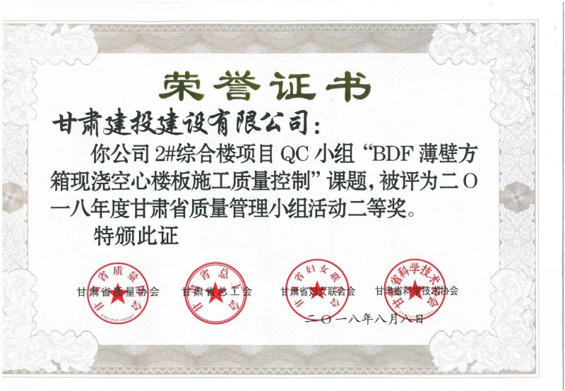 近日,甘肅省第38次質量管理小組代表會在臨夏州永靖古城新區(qū)落下帷幕。從會上獲悉,甘肅建投建設有限公司取得2個QC成果一等獎,1個QC成果二等獎的好成績。