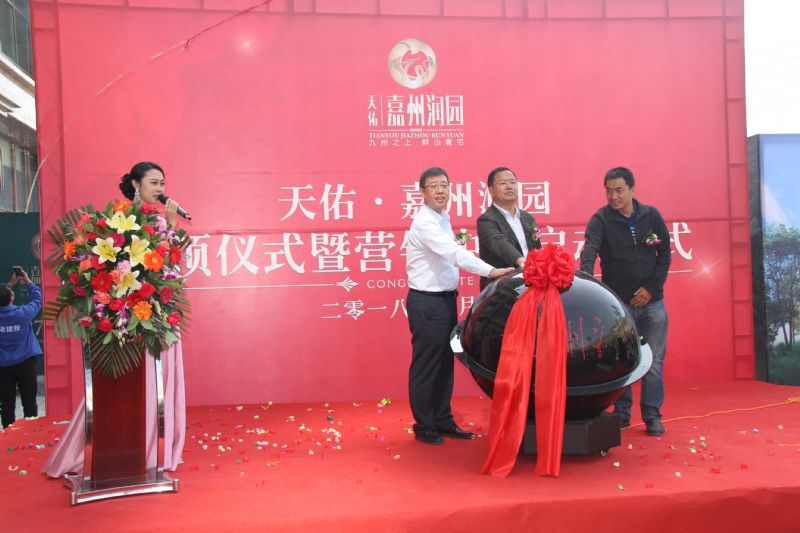 封頂儀式最后,芮劍鋒與甘肅天健實(shí)業(yè)有限公司董事長(zhǎng)楊君才、蘭州濱河監(jiān)理有限責(zé)任公司總監(jiān)理工程師封維全共同按下啟動(dòng)球,標(biāo)志著天佑•嘉州潤(rùn)園項(xiàng)目隆重開盤。