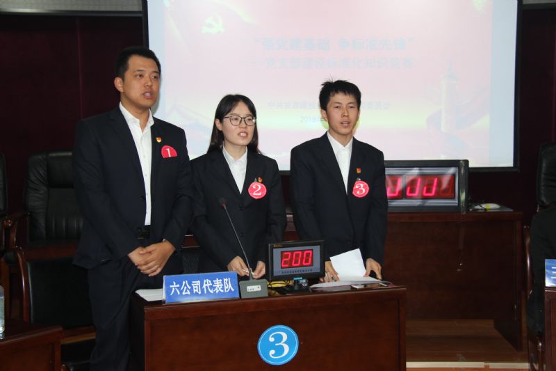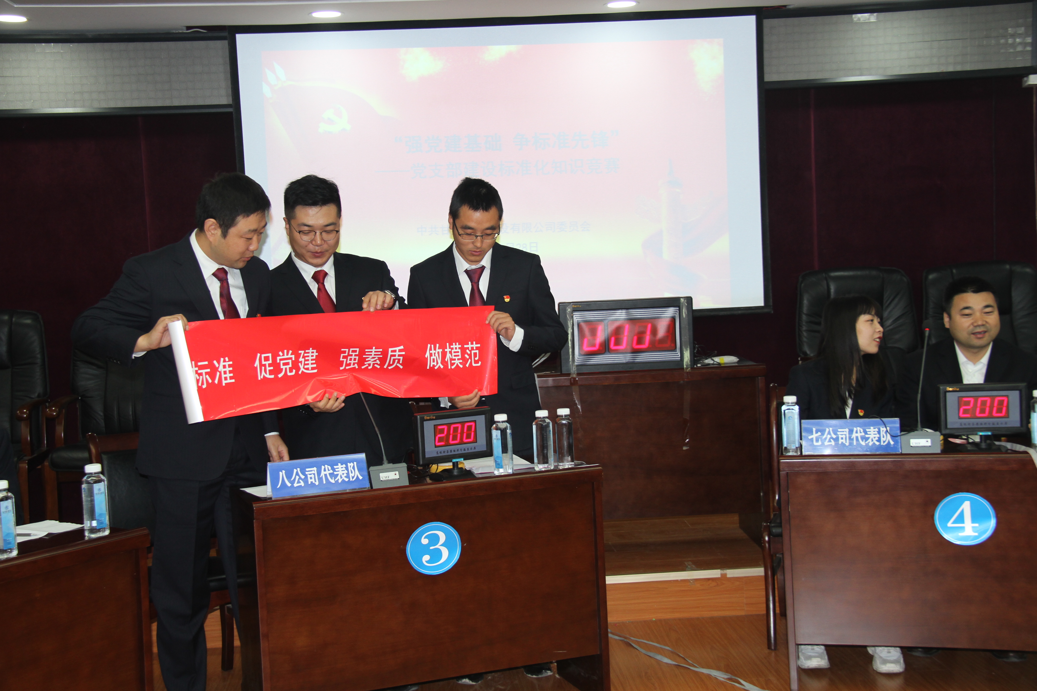 為了貫徹落實(shí)全面從嚴(yán)治黨要求,學(xué)好黨章及黨的十九大精神,充分運(yùn)用習(xí)近平新時(shí)代中國(guó)特色社會(huì)主義思想武裝頭腦,展示“兩學(xué)一做”學(xué)習(xí)教育常態(tài)化制度化成果,進(jìn)一步推進(jìn)建設(shè)公司黨支部建設(shè)標(biāo)準(zhǔn)化和“七五”普法工作,9月28日,在“十一”國(guó)慶來(lái)臨之際,建設(shè)公司黨委隆重舉辦了以“強(qiáng)黨建基礎(chǔ)、學(xué)普法知識(shí)、爭(zhēng)標(biāo)準(zhǔn)先鋒”為主題的知識(shí)競(jìng)賽活動(dòng),基層12個(gè)黨支部的領(lǐng)導(dǎo)班子成員、支部委員、黨務(wù)專干及黨員干部共計(jì)36人參加了此次知識(shí)競(jìng)賽。