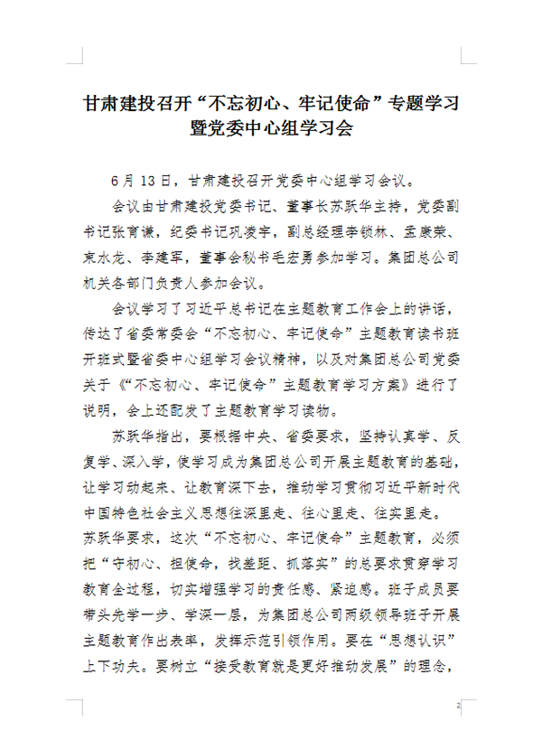 【不忘初心 牢記使命】甘肅建投召開“不忘初心、牢記使命”專題學(xué)習(xí) 暨黨委中心組學(xué)習(xí)會