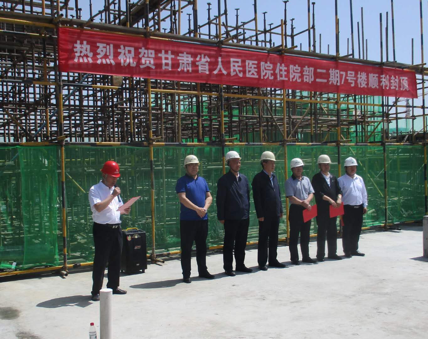 6月6日,由建設(shè)公司一公司承建的省人民醫(yī)院住院部二期項目部7號樓主體結(jié)構(gòu)順利封頂。建設(shè)公司黨委書記、董事長張國虎、副總經(jīng)理張春效,甘肅省人民醫(yī)院院長錢耀文、黨委書記李興勇、副院長裴中,甘肅省建設(shè)監(jiān)理公司總經(jīng)理華勤春等參加了封頂儀式。