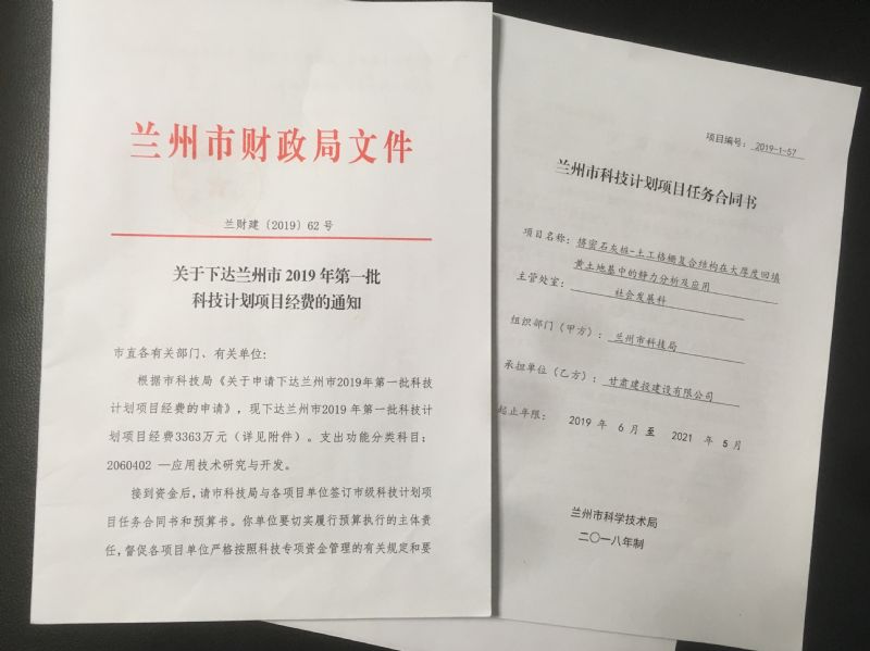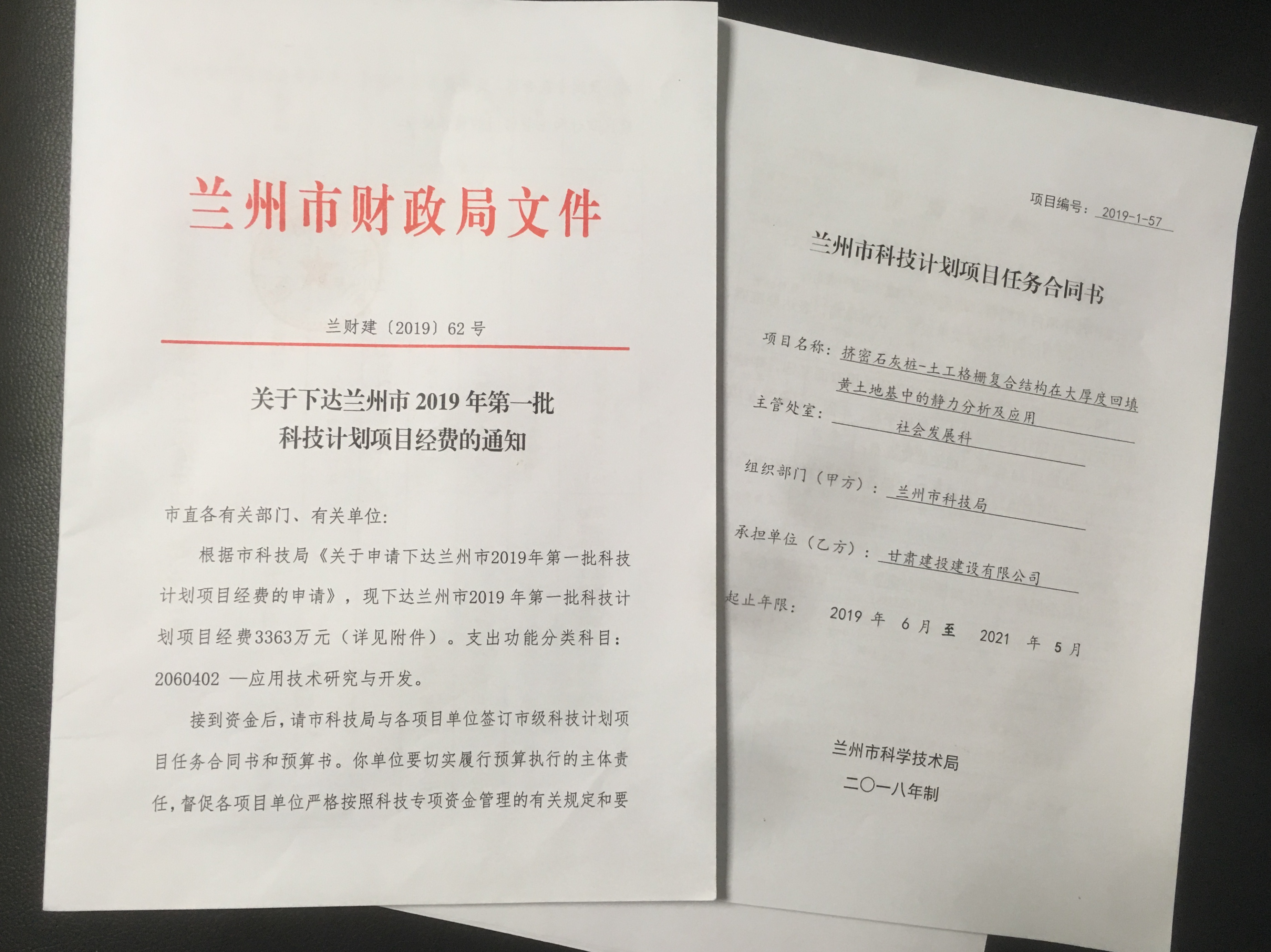 近日,蘭州市2019年度第一批市級科技計劃項目的立項結(jié)果已經(jīng)公布,由建設(shè)公司申報的蘭州市科技局科研項目《擠密石灰樁-土工格柵復(fù)合結(jié)構(gòu)在大厚度回填黃土地基中的靜力分析及應(yīng)用》正式批準立項,同時獲得蘭州市科技局科研經(jīng)費支持20萬元。