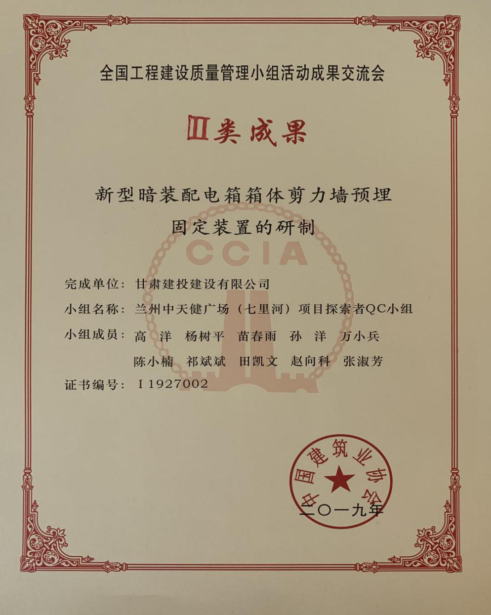 建設(shè)公司QC成果獲2019年度全國(guó)工程建設(shè)質(zhì)量管理小組成果交流會(huì)Ⅱ類成果