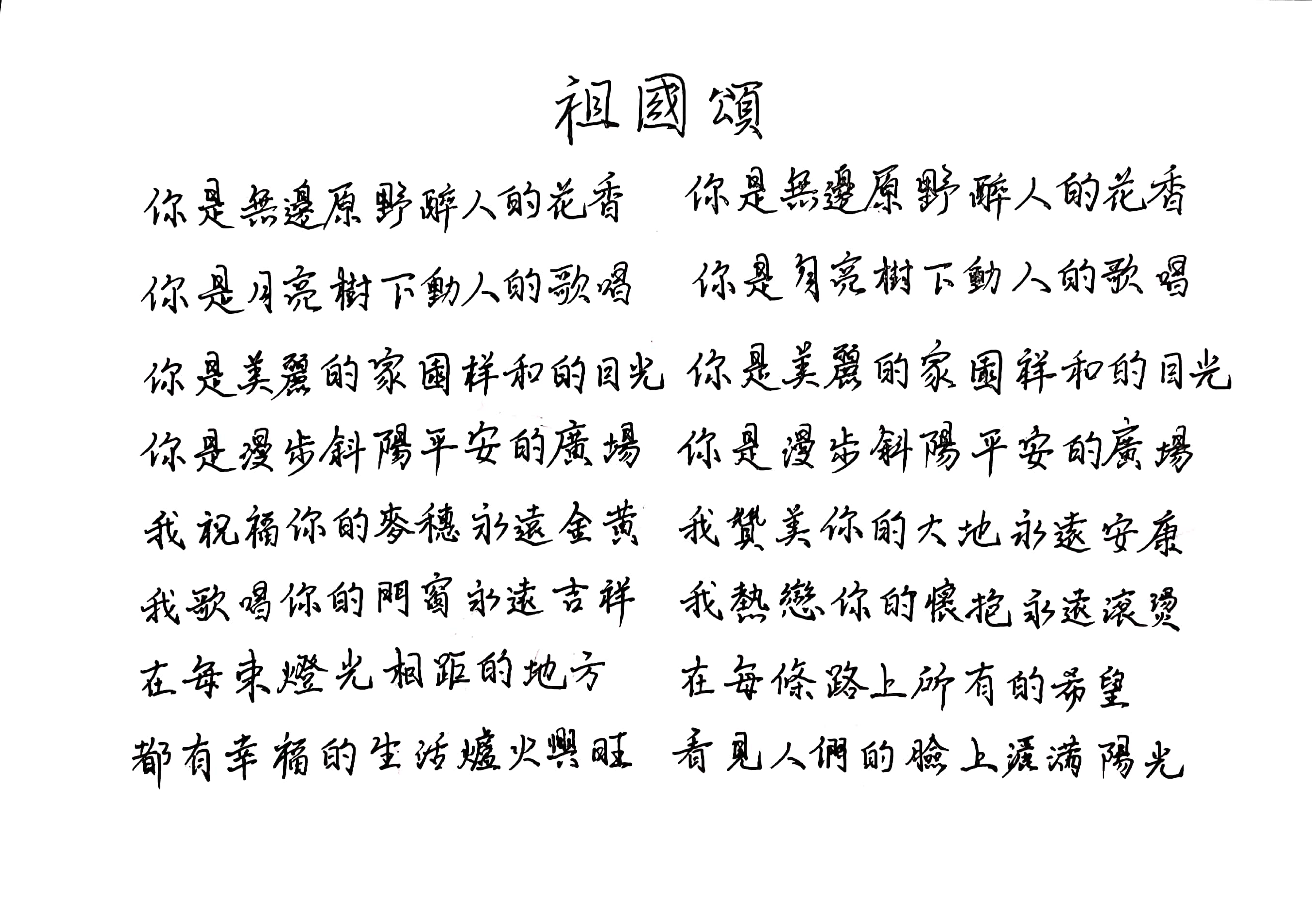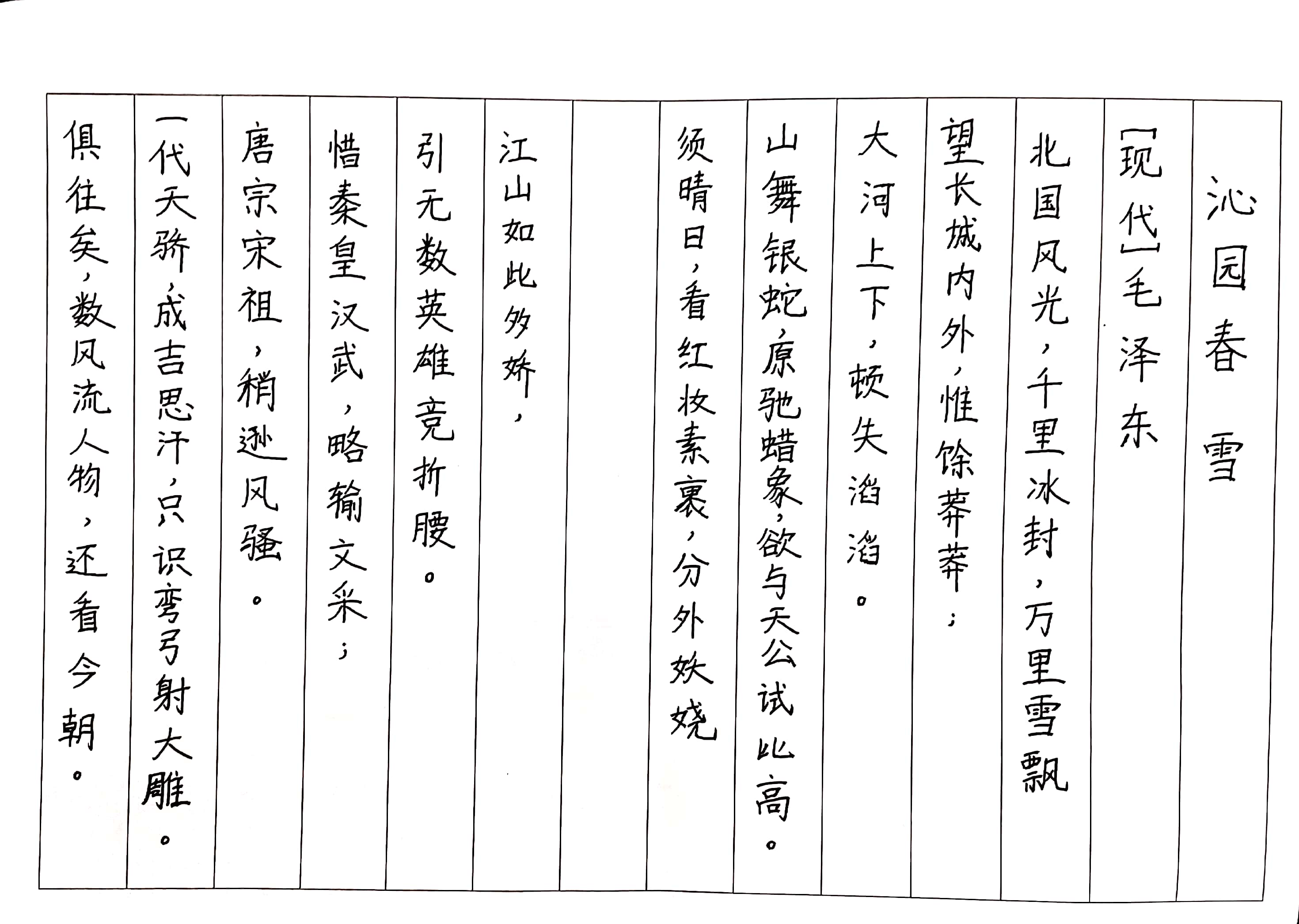 (三等獎(jiǎng)  唐祺臻-《祖國(guó)頌》)                                                          (三等獎(jiǎng)  張晶晶-《沁園春 雪》)