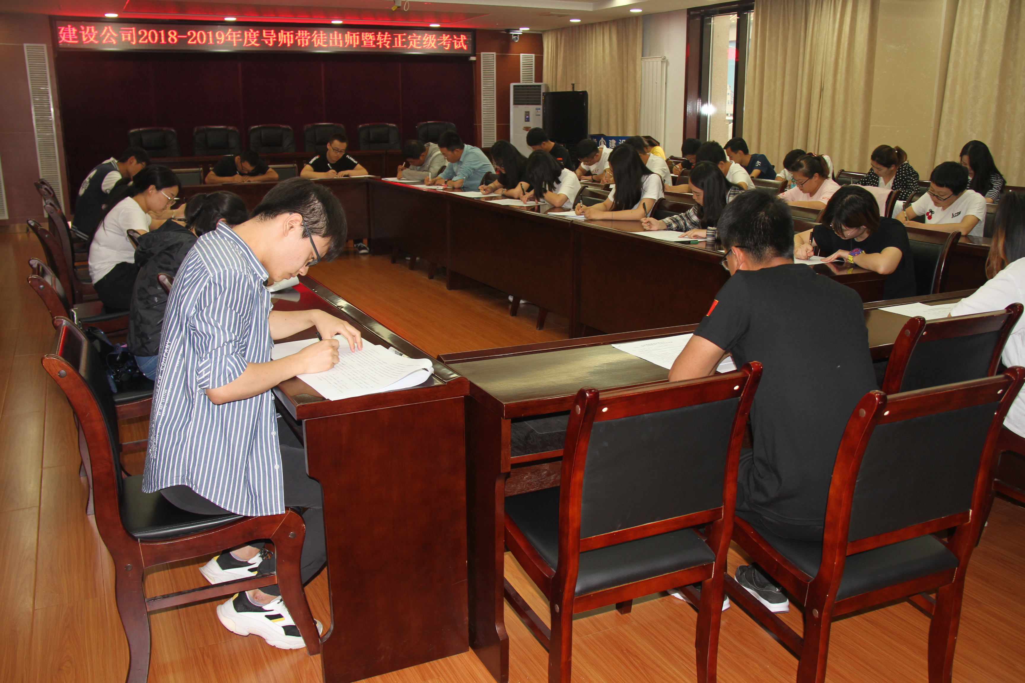 7月19日,建設(shè)公司團(tuán)委和人力資源部在公司一號(hào)會(huì)議室,組織2018年簽訂“導(dǎo)師帶徒”協(xié)議的36名職工開展“導(dǎo)師帶徒”出師暨轉(zhuǎn)正定級(jí)考試。