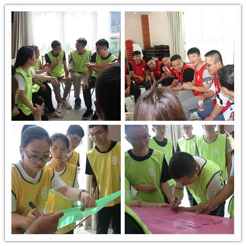 在開營(yíng)儀式上,參訓(xùn)人員被隨機(jī)分為四支隊(duì)伍,培訓(xùn)老師通過(guò)簡(jiǎn)單的小游戲和自我介紹環(huán)節(jié)幫助大家進(jìn)行正式訓(xùn)練前的熱身,并有效調(diào)動(dòng)起全員參與活動(dòng)的積極性。隨后在“領(lǐng)導(dǎo)班子建設(shè)”和“團(tuán)隊(duì)文化建設(shè)”的環(huán)節(jié)中,四支隊(duì)伍迅速確定了團(tuán)隊(duì)領(lǐng)導(dǎo)班子、隊(duì)名、口號(hào)以及團(tuán)隊(duì)造型,在最短的時(shí)間內(nèi)完成了建立團(tuán)隊(duì)的相關(guān)任務(wù),初步建立起團(tuán)隊(duì)凝聚力及高效執(zhí)行力。