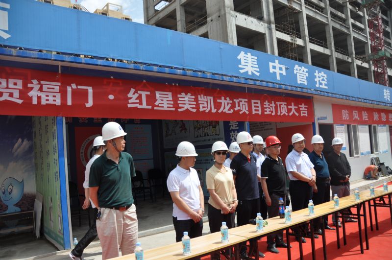 7月30日11時18分,伴隨著最后一方混凝土的澆筑到位,在業(yè)主及各參建單位的見證下,由建設(shè)公司八公司承建的福門•紅星美凱龍全球家居博覽中心城市綜合體建設(shè)項目正式完成主體結(jié)構(gòu)的封頂。